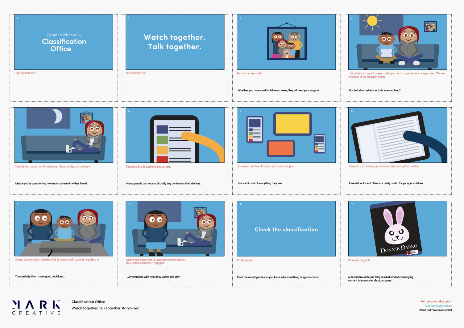 The priority for the animations we created for The Classification Office over the years is to engage, educate, and entertain. This resulted in us developing colourful and energetic visual language in a myriad of styles, fitting within the new brand (see here) with colours and typography. Rarely keeping the same style, we have created a bunch of animations for use across a variety of platforms and audiences.