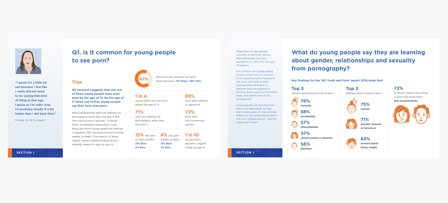 The Ministry of Education (MoE) and Classification Office invited us to collaborate on an exciting project to introduce learning about porn in schools. This project was especially unique as this was the first time they have introduced pornography and Relationships and Sexuality Education, acting as a breakthrough moment for encouraging important and healthy conversations to NZ youth.